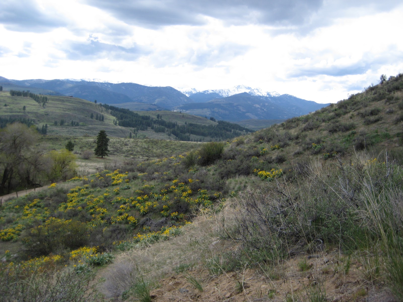 Randy and I took our dogs up into the hills late yesterday afternoon. The view from the ridge where we hiked was breathtaking with distant snowy peaks and foothills starting to green up. We breathed in fresh mountain air and knew we had come to this place for more than a walk with Kramer and Kosmo who jetted up and down hillsides like white bullets, unaware of the mountain sanctuary we had entered.